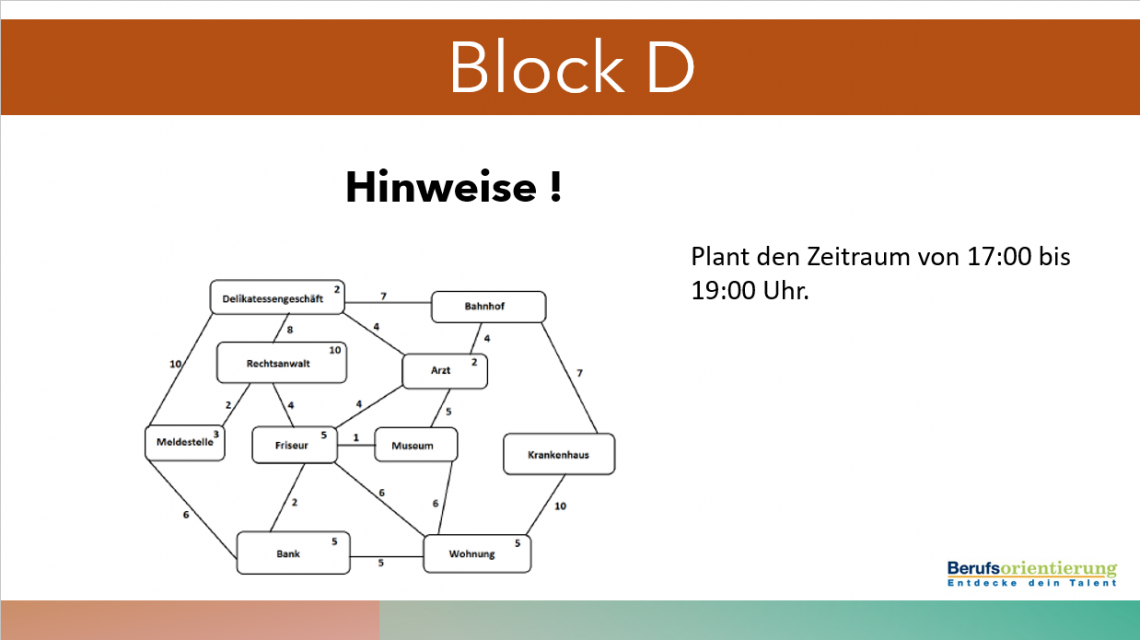 In vier abwechslungsreichen Blöcken hatten die Jugendlichen die Möglichkeit, ihre persönlichen Kompetenzen und Fähigkeiten zu erkunden. Das Programm reichte von der bekannten NASA-Übung über die kreative Marshmallow Challenge, einer Lego-Technik Konstruktionsaufgabe bis hin zur praxisnahen Postkorb-Übung. Hierbei konnten die Teilnehmenden u.a. Teamgeist, Problemlösefähigkeit, Kreativität und Organisationsgeschick unter Beweis stellen.